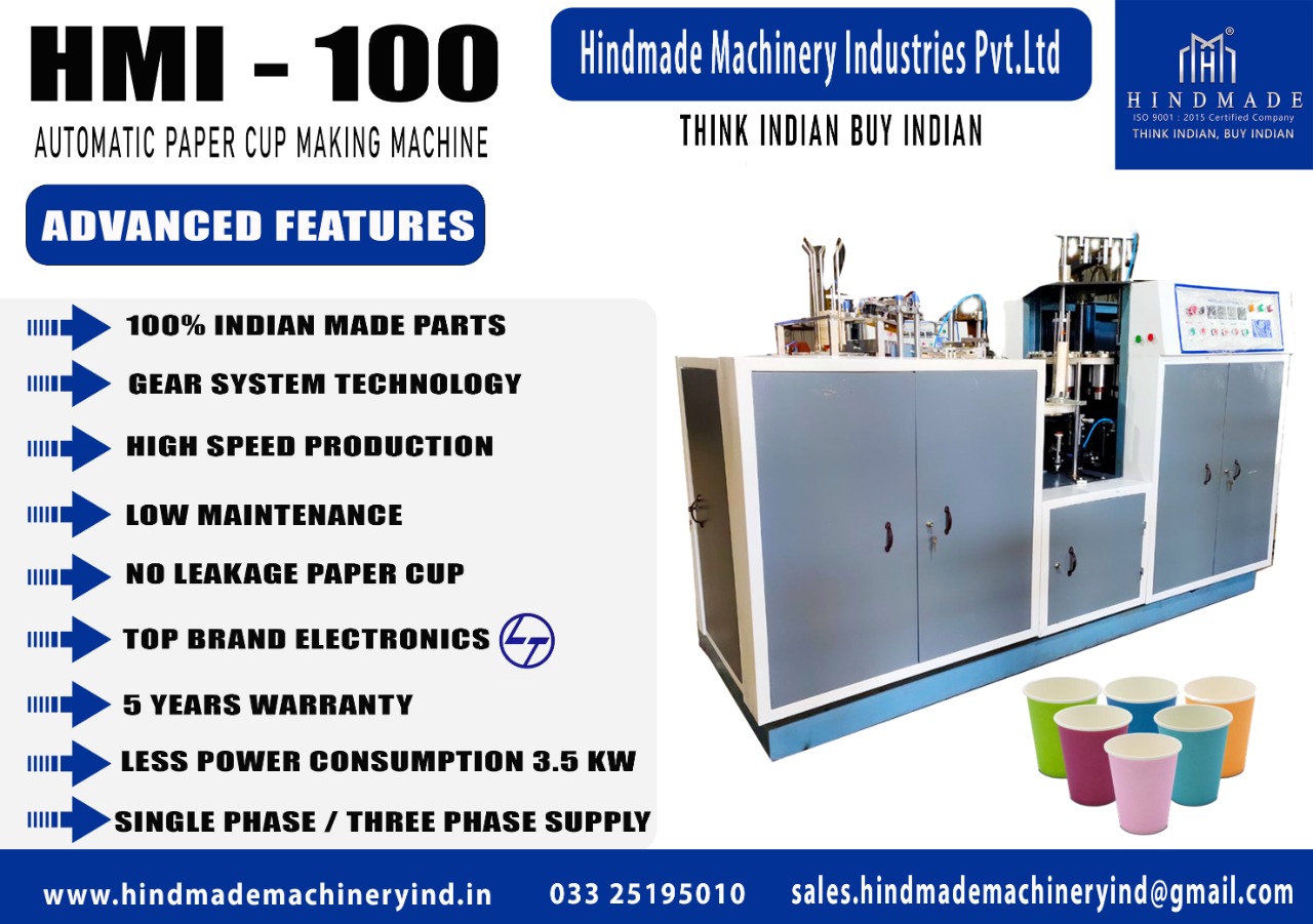 The Indian made paper cup machine is having 100% Indian made parts, which is more reliable long life comparing than Chinese paper cup making machine. The parts are almost from famous brand to provide a better quality with extended warranty. Our paper cup machine is completely designed and manufacturing in our factory and the quality of the paper cup machine is very extremely precious with maximum standards. Inch by inch our new paper cup making machine is scanned by advanced equipments to ensure the finest product, so the customer shall visit to our paper cup making machine manufacturing unit at any time, which will be fruitful to the customers for understand the technology and functioning.